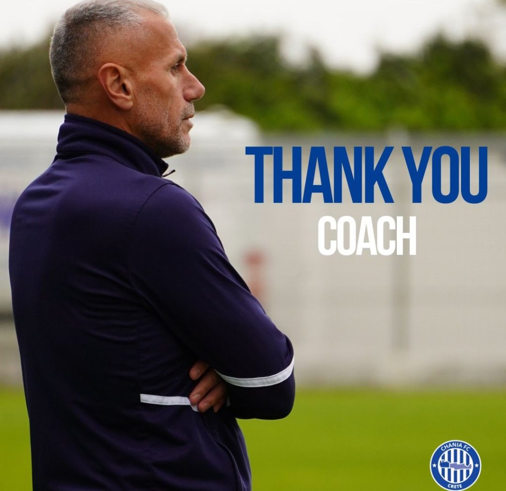 Η ΠΑΕ Χανιά τον ευχαριστεί θερμά για την προσπάθεια, την επαγγελματική του στάση και τη δουλειά που προσέφερε στο διάστημα της συνεργασίας μας, καθώς και για την αξιοπρέπεια με την οποία εκπροσώπησε τον σύλλογο.