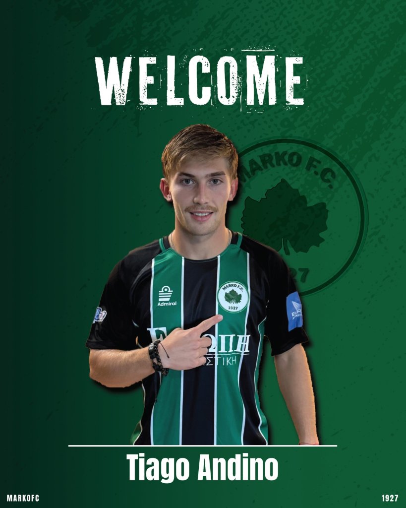 «Η ΠΑΕ Μαρκό ανακοινώνει την απόκτηση του Αργεντινού ποδοσφαιριστή Tiago Andino Valencia. Ο 22χρονος ακραίος αμυντικός έρχεται στην ομάδα μας για να ενισχύσει τη δεξιά πτέρυγα, φέρνοντας μαζί του παραστάσεις από το κορυφαίο επίπεδο του ποδοσφαίρου της Λατινικής Αμερικής.