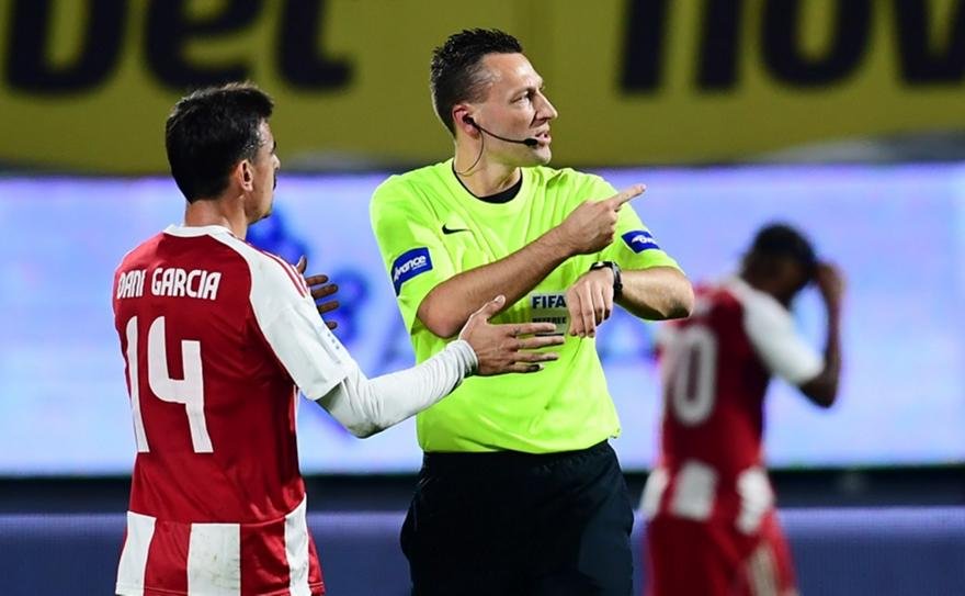 Ο διαιτητής Γιαμπλόνσκι σωστά απέβαλε τον Γκαρθία, αλλά στο βίαιο μαρκάρισμα στον αχίλλειο του Τσικίνιο ο Γερμανός ρέφερι άφησε πλεονέκτημα με την μπάλα να καταλήγει… πλάγιο άουτ, αλλά και ατιμώρητο τον αντίπαλο. Παράλληλα τονίζουν πως δεν παίχτηκε ποδόσφαιρο στα λίγα λεπτά των καθυστερήσεων και καλούν τον Λανουά να πάει στη Γερμανία να βρει τους… elite φίλους του…