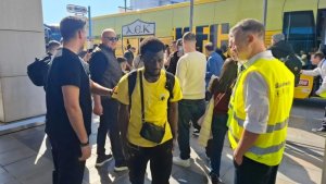 Κατά την αναχώρηση της αποστολής, στο «Ελ. Βενιζέλος» βρέθηκαν αρκετοί οπαδοί της ΑΕΚ οι οποίοι αποθέωσαν τον Μάρκο Νίκολιτς και τους ποδοσφαιριστές, ενώ όπως ήταν φυσικό η μεγαλύτερη αποθέωση ήταν για τον Κοϊτά, τον σκόρερ της Ένωσης στο ντέρμπι με τον Ολυμπιακό.